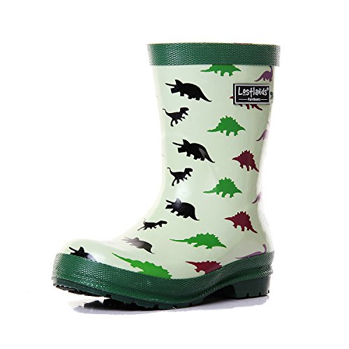 恐竜柄のレインブーツです。写真ではわかりにくいですが、後ろ側に恐竜の背びれのようなギザギザの飾りがついているユニークなデザインで、子供が喜びそう。