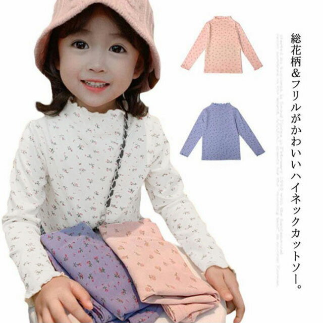 こちらのキッズ用のハイネックシャツは肌触りもよいですし、小さな小花柄がちりばめられていてかわいいです。