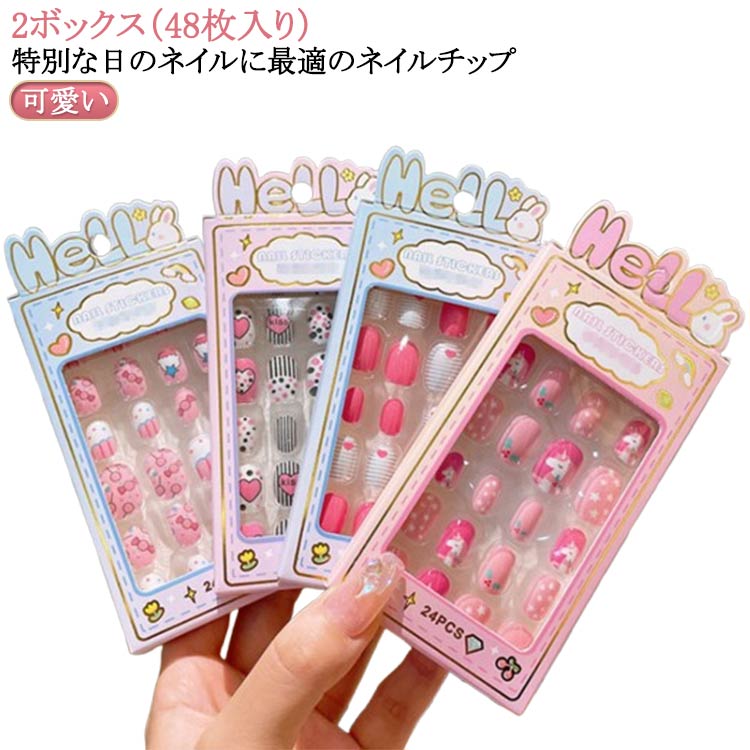 かわいいデザインのジェルネイル風ネイルチップが48枚入りで、子供の指先を華やかに彩り、簡単に付け外しできるので初めてでも楽しめます。