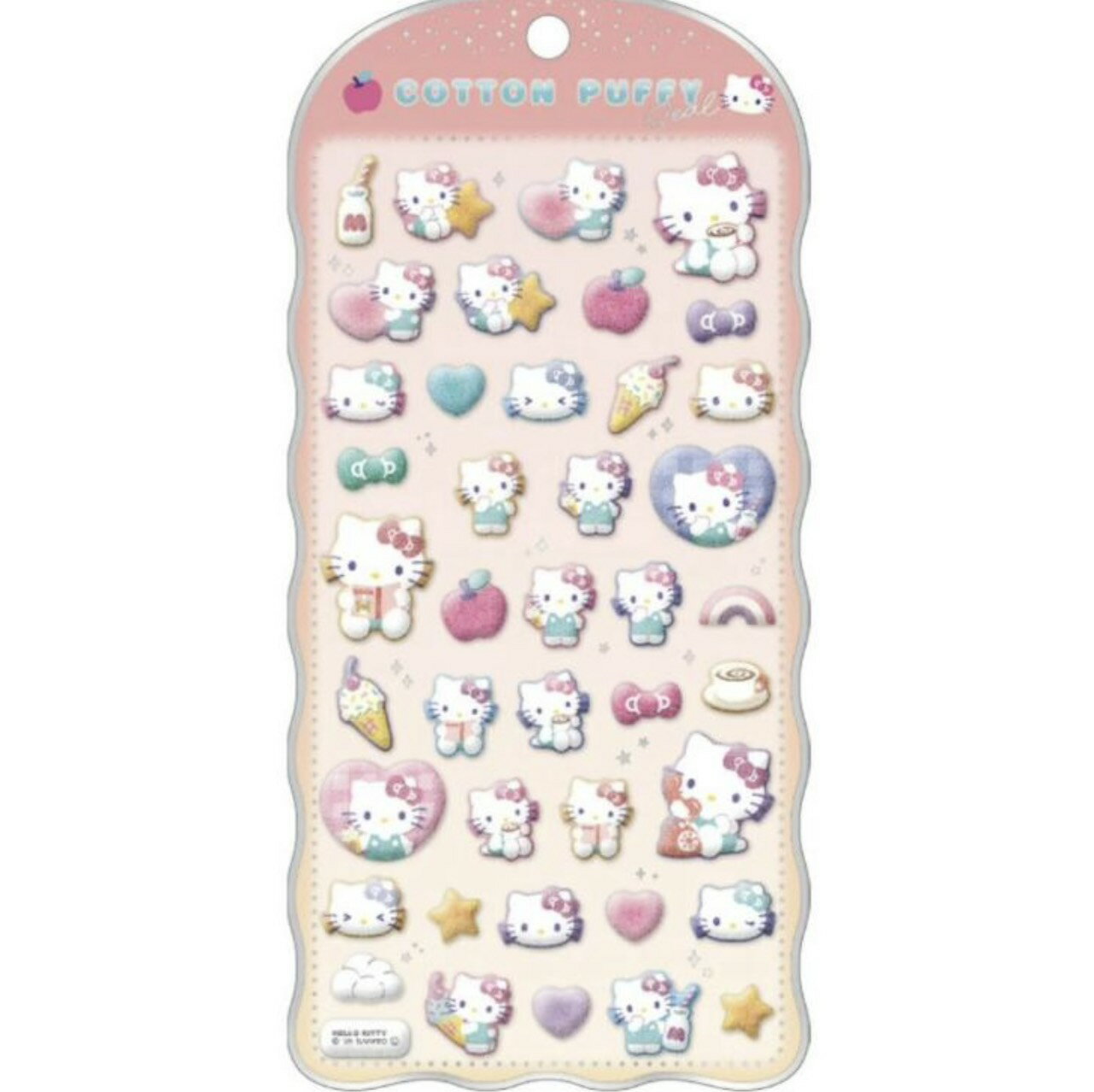 こちらのぷっくりしたコットンパフィーのサンリオのシールは、ウィンクしている表情や、ダイヤル式電話を使って通話中のものなど、色々な表情や仕草をしたキティちゃんのデザインを楽しめますのでおすすめです。