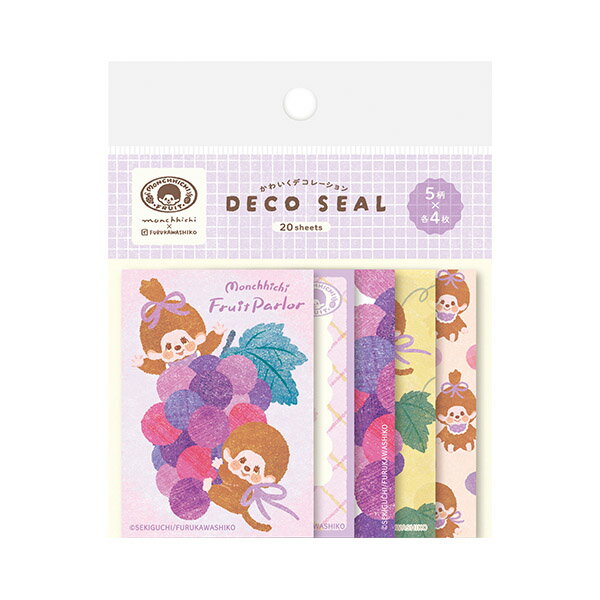 フルーツパーラ-がテーマのモンチッチのデコシールです。長年世代を超えて愛されるキャラクターで、可愛いのでオススメです。