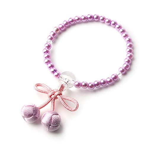お子さん用の数珠をお探しでしたら、こちらはいかがでしょうか。あわい可愛らしい色味の数珠です。シンプルなデザインなのでしばらく使えると思います。ベロアのケースも付いているのでおすすめです。