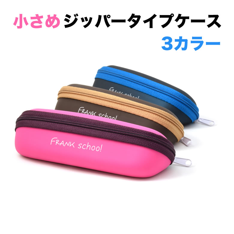 フロントファスナーのメガネケースです。ピンク・ブルー・ベージュから選べます。セミハードタイプで衝撃には少々弱いですが、その分お安くてお手頃です。