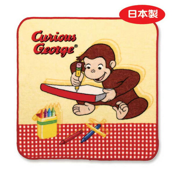 おさるのジョージのかわいいミニタオルです。22cm角でポケットにも入れやすく、日本製で品質も安心です。