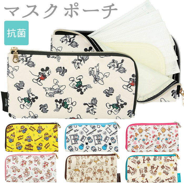 ディズニーやサンリオキャラクターのマスクポーチです。L字ファスナーで大きく開き、マスクの出し入れがしやすいです。中は便利な仕切り付き。抗菌仕様なのが安心ですね。