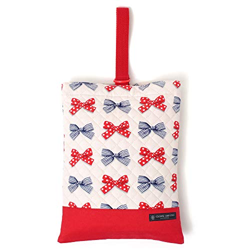 リボンのデザインが女の子らしくてかわいいキルティング素材のシューズケースです。耐久性に優れてシワになりにくく丈夫です。ネームタグが付いて簡単に開閉ができるので出し入れもしやすく使い勝手が良いですよ。