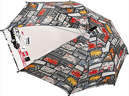 こちら長傘はいかがでしょうか?TOMICAのコミック柄の長傘です。透明窓付きで、長さも50センチあるので、園児さんにぴったりのサイズです。働く車は男の子に人気ですので、喜んでいただけると思います。