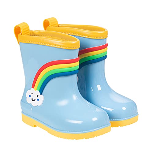 ブルーに立体的な虹がデザインされたかわいいレインシューズです。柔らかくて履きやすく、足裏の滑り止めもしっかりしています。