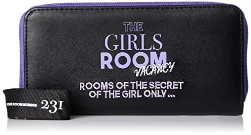 ラウンドファスナーの長財布が、中身が外に出なくて使いやすいです。パープルと黒のデザインが、オシャレです。