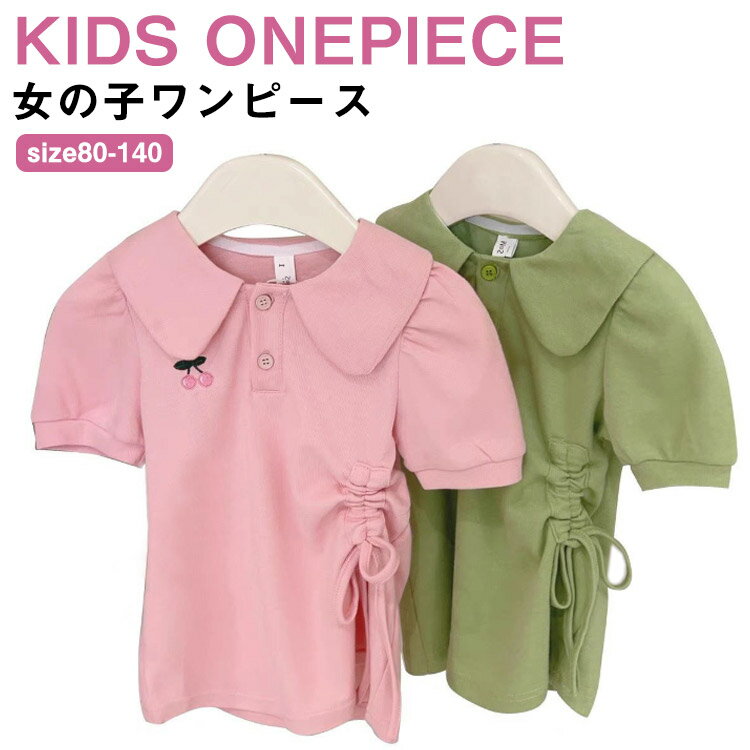 こちらのワンピースはいかがでしょう。チェリーの小さな刺繍がおしゃれです。大きめのポロシャツ襟がポイントになって可愛らしくてこれ1枚でコーデが決まっておすすめですよ。