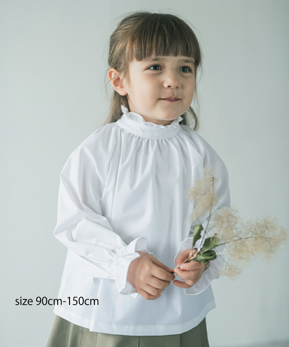 シワになりにくい生地で作られた可愛いブラウスです。前ボタン、後ろボタンのどちらでも着られる2Way仕様なので合わせる服によって表情も変えられます。フォーマルに相応しい品の良さがあるのでおすすめです。サイズは90~150㎝に対応しています。