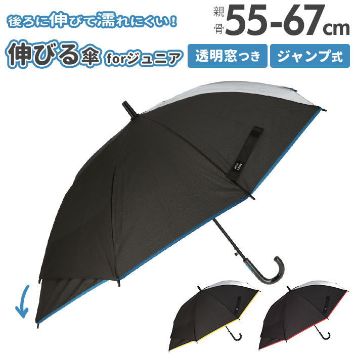 こちらの傘は、伸びること・窓付きなのがポイントです。大きめですが、軽いので小学生の子供さんでも持ちやすいです。撥水加工も付いているので、ランドセル本体・中身はもちろん、服も濡れずに使えます。