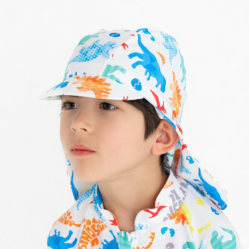 恐竜をモチーフにしたデザインがかわいらしいスイムキャップはいかがでしょうか。大きな日除けが付いていてしっかり紫外線対策ができるのでおすすめです。