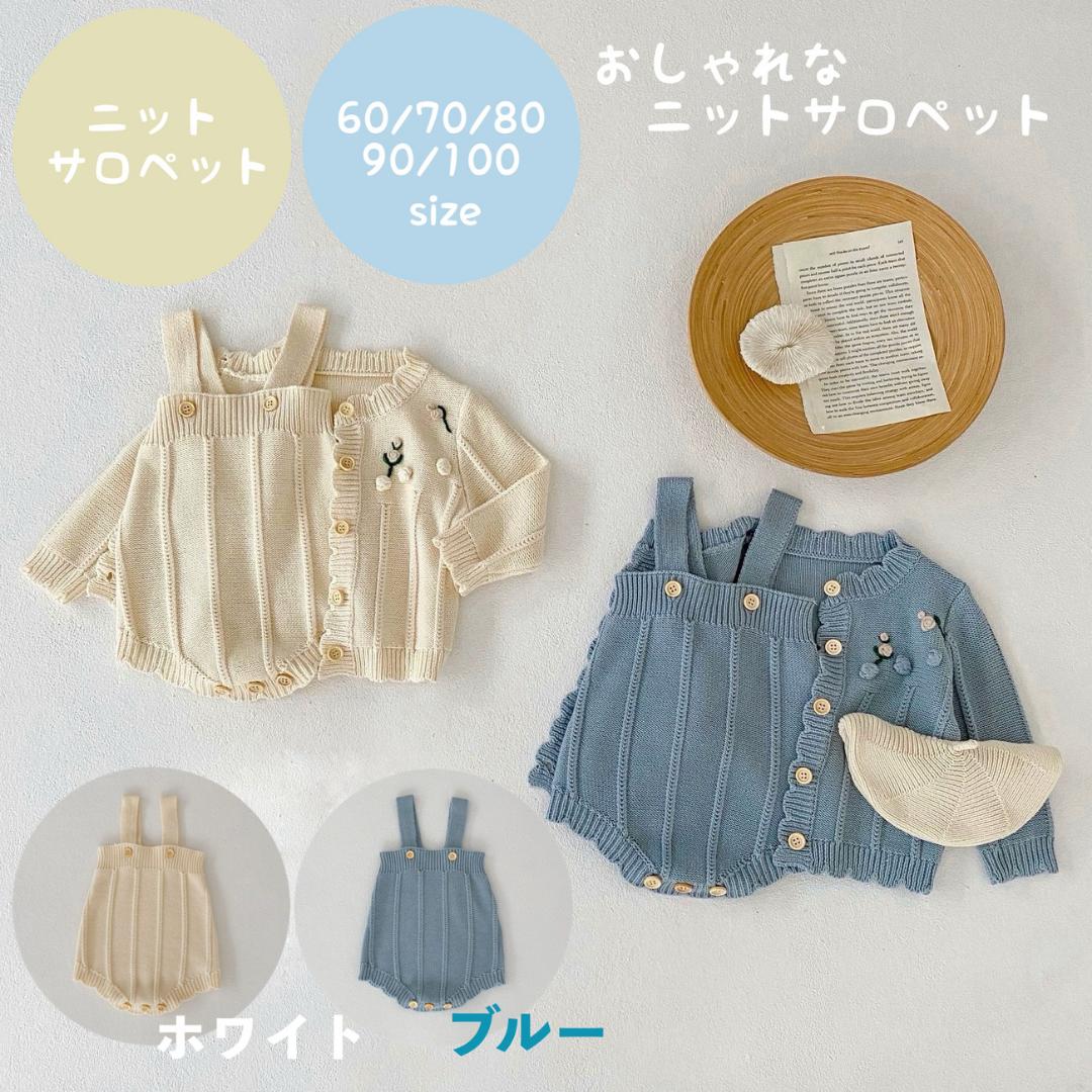 くすみカラーがおしゃれなベビーロンパースとカーディガンのセットです。ニットの質感が可愛らしく、カーディガンだけなどでも着用しやすくて、便利だと思います。