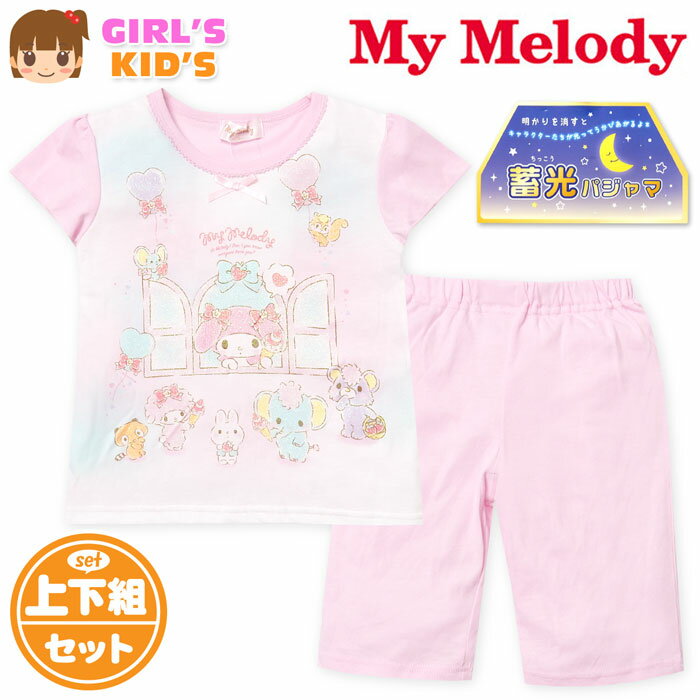 サンリオの人気キャラクター、マイメロディがプリントされた日の光や部屋の光を蓄電し暗い場所では光る、蓄光タイプの女の子向けパジャマです。