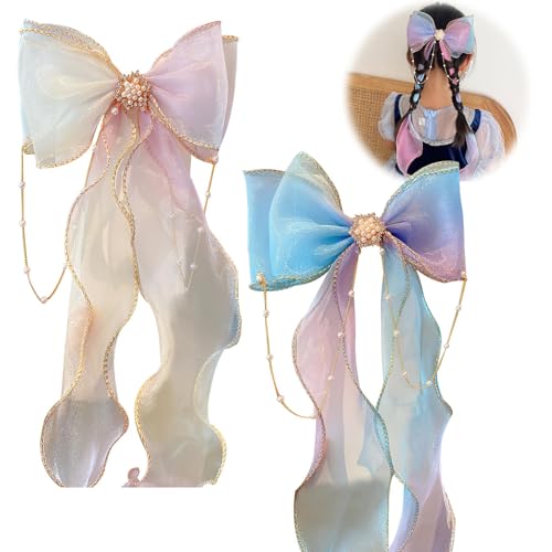 ゴージャスな雰囲気のリボン型ヘアアクセサリー2点セットです。クリップ式で簡単に留められるので、使いやすいと思います。