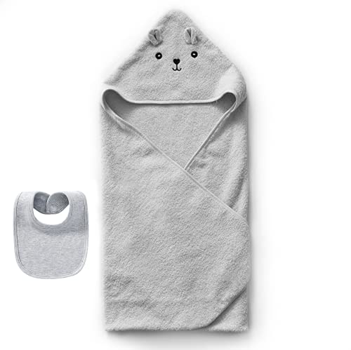 可愛いお顔付きのベビーポンチョはいかがでしょうか。オーガニックコットン100%で肌に優しく、吸収速乾性も高いのでおすすめします。ベビービブもセットになっているので喜ばれると思います。