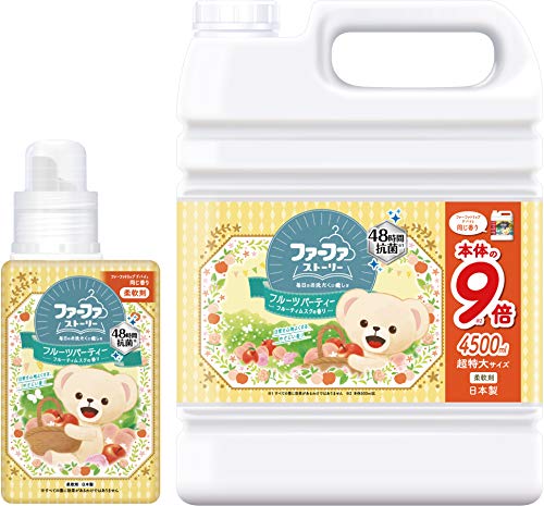 ファーファの柔軟剤でストーリーフルーツパーティーはいかがでしょうか?フルーティームスクの香りで優しく爽やかに香りますよ。フルーツの種類はりんごとピーチ。そこにほんのり甘いムスクが加わった香りです。植物由来の成分で構成されており小さなお子様からお年寄りまで安心して使えてお薦めです。