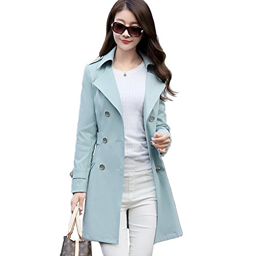 鮮やかなスカイブルーのカラーが春らしくキレイな色で、素敵ですね。コートのデザインもオシャレです。