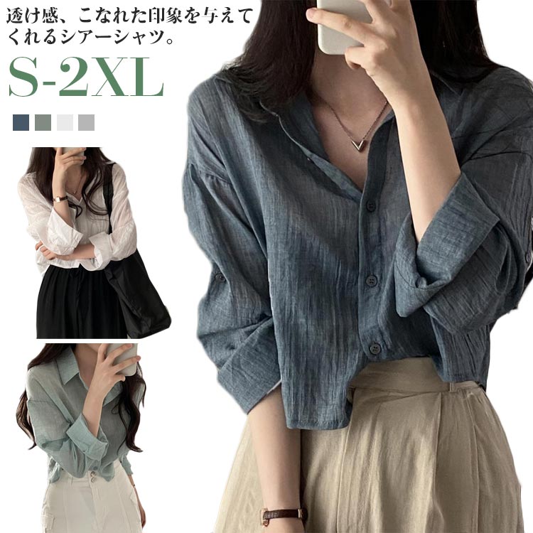 こちらのショート丈のシアーシャツはシースルーで見た目も涼やかで春夏にぴったり。韓国風の雰囲気も感じられ、単体はもちろん、インナーの上にさっと羽織るだけでも。くしゅっとした質感でナチュラル感も感じられるのがいいですね