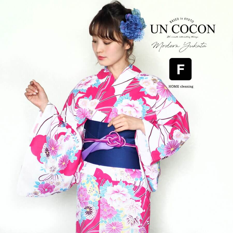 華やかな牡丹や菊の柄があしらわれた白とピンクのレディース浴衣は、仕立て上がりで着付けも簡単、レトロな雰囲気を演出しつつ上品で可憐な印象を与えるフリーサイズの女性用浴衣です。