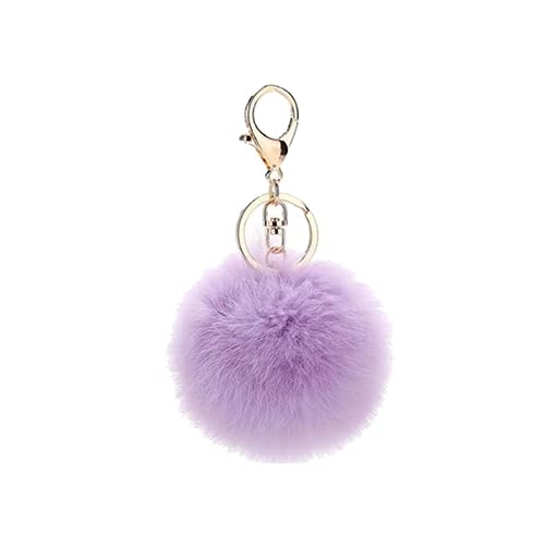 パープルカラーのポンポンキーホルダーでおしゃれです。D カンがついていてカバンなどに取り付けやすいです。