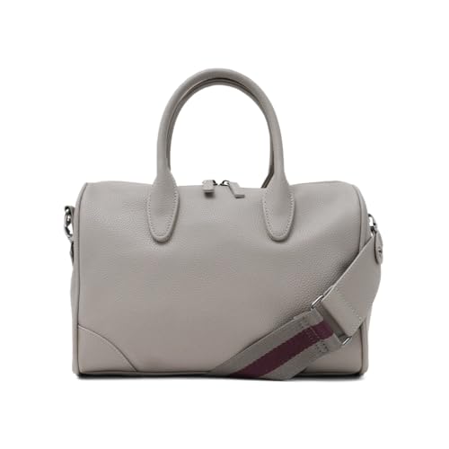 ライトグレーのレザーのデザインで、爽やかでおしゃれです。ショルダーがついていて肩からかけることもできて便利です。ダブルファスナーがついていて、左右のどちらからも開けることができて使いやすいです。