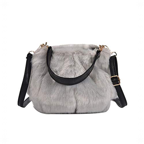 グレーのファーのバッグで、おしゃれです。取り外しのできる長さの変えられるショルダーがついていて、肩からかけられて持ち運びしやすいです。ハンドバッグにもなるので、おしゃれで便利です。