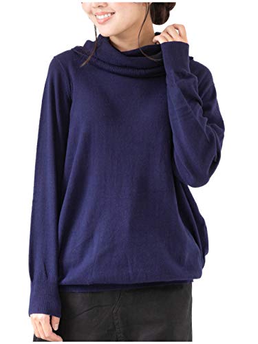 - [メリーボックス] オフタートル リブ切替 ニット ナチュラル 可愛さ ゆるシルエット 幅広 ハイネック たっぷり オフタートルネック 丈感 調節 柔らかな 着心地 コットンニット お洒落 風合い 優しく フィット すっきりした印象 ルーズ シルエット 綿ニット おしゃれ レイヤードコーデ スタイル プルオーバー ボリューム タートルネック トップス レディース (01.M-L, ネイビー)