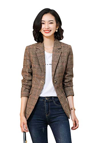 こちらはいかがでしょうか。細身でウエストがシェイプされた女性らしいフォルム。同系色のチェックなので、無地に近い感覚で着られます。S~4XLとサイズ豊富なのもお勧めポイント。カラーは写真のブラウンの他にグレーがあります。
