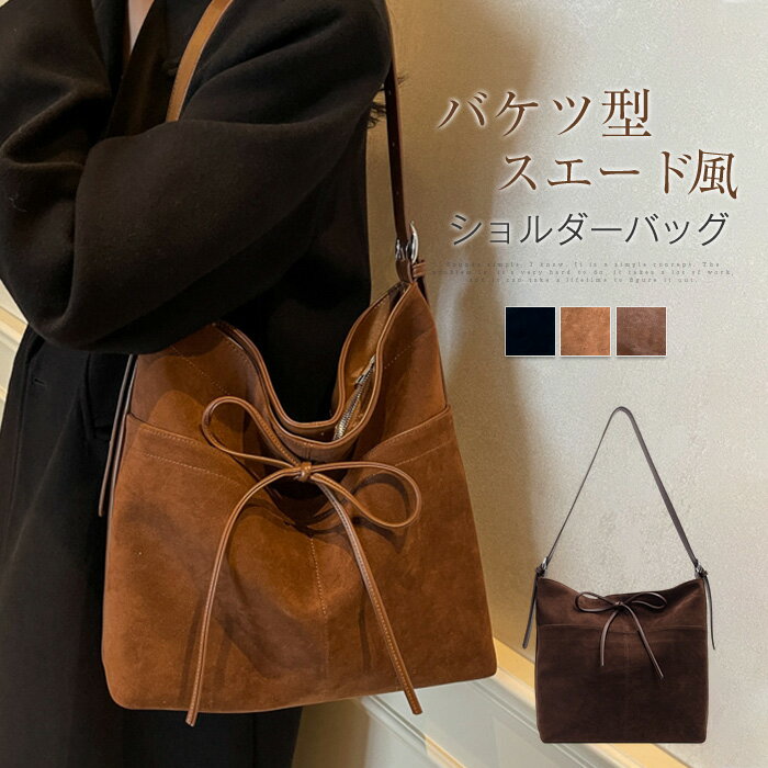 あたたかみのある、スウェード生地のレディース向けショルダーバッグなのでおすすめします。バケツ型なので使い勝手がよいですよ。