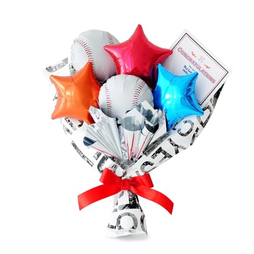 誕生日や発表会、卒業式などで使用できるバルーン花束です。約32×36cmサイズ、カラフルなバルーンを花束のようにデコレイトしたもので、スポーツをモチーフにしているためクラブ活動のお祝い、記念などにも使用でき、サッカー、バスケ、野球の3種類から選べます。