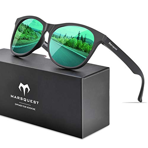- MARSQUEST 偏光 サングラス 偏光レンズ ウェリントン型 ミラー サングラス 超軽量フレーム採用 表面に特殊なコーティング技術加工 UV400紫外線・反射光・強光眩しい光・グレアからカット 一体式鼻当 落下防止デザイン 超抗衝撃 自転車・ドライブ・ランニング・釣り・登山・トレッキングなどスポーツにも最適 ファッションなデザイン メンズ & レディース用 収納ポーチ付き momentum (グリーン)