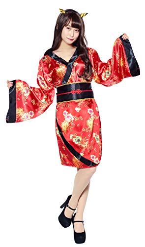 こちらの着物風鬼コスプレはいかがでしょう?カチューシャの角つきでかぶるだけですぐにコスプレ完了です。着物のように合わせて着てもいいですし、前を開けて羽織ったり、寒い時期なら中にタートルネックやパンツを合わせても着やすいかと思います。艶のある生地なのでライトが当たると光って雰囲気も変わりそうですね。