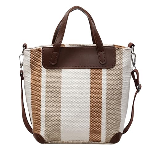ストライプ柄のミニキャンパスショルダートートバッグはいかがでしょうか?で、ハンドル取外し可能なストラップ部分はPUレザー製です。本体は厚手のキャンバス地で丈夫です。手提げにも肩掛けにも斜め掛けにもできる便利な3WAYです。サイズは24×9×23cm。スマホや財布や鍵類など手回り品を入れて出かけるのに便利!カジュアルウェアにもきれいめにも似合うのでコーデの幅が広がりますよ。お洒落でお薦めです。