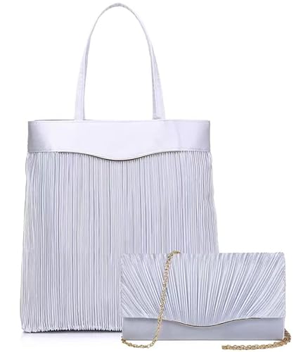 普段使いもお考えならこちらのセットはいかがでしょうか。生地にプリーツ加工を施しており、着物にも洋装にもマッチする上品なデザイン。サブバッグはA4対応の使いやすい大きさです。カラーがシルバー(写真)とシャンパンゴールドから選べるのも良いかと。バッグのサイズは約24.5×14×5cmです。