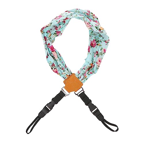 スカイブルーの生地に小花柄が可愛いカメラストラップはいかがでしょうか。綿混素材で肌触りも良いと思うのでおすすめします。