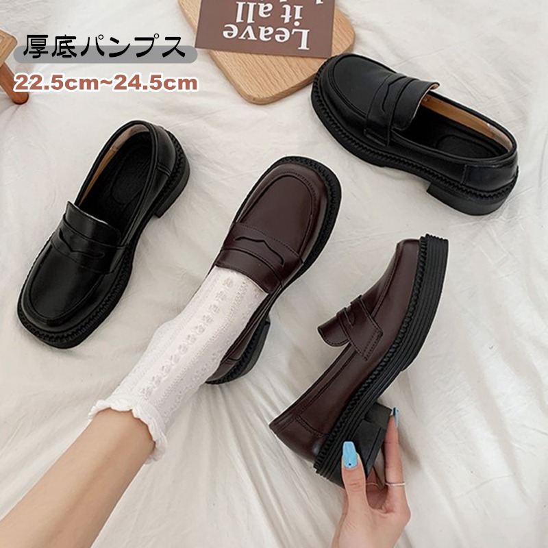 こちらの厚底ローファーはいかがでしょう。シンプルでおしゃれなので大人の女性にも学生にもいいと思います。履きやすくヒール4cmで痛くなく歩きやすくおすすめですよ。