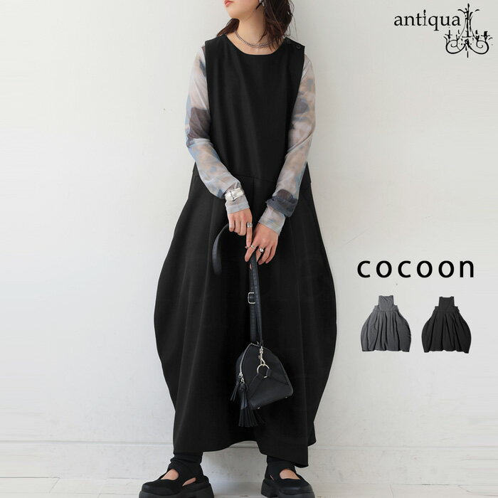 アッパーはすっきり、スカート部分はボリュームたっぷりのコクーンシルェットなので体型をカバーしながら細見えのジャンスカです。