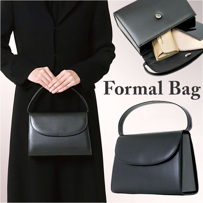 こちらの手提げのブラックフォーマルバッグは小さめサイズでお葬式で使いやすくて、シンプルならがもゆるやかなカーブのかぶせが女性らしくて上品なデザインですのでおすすめです。