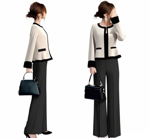 こちらはいかがでしょうか。ベージュとブラックでメリハリのあるデザイン。ボトムはセンタープレスできちんと感があります。それぞれ着回しやすいのも嬉しいところ。サイズはS~Lの3種です。
