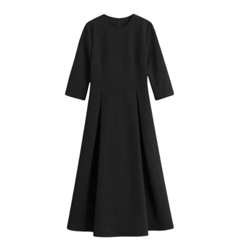 こちらのワンピースはいかがでしょうか。ボタンすらないシンプルなデザインで、お弔いの気持ちを表すのにぴったり。タックが入ったスカートは裾広がりで、正座をすることになっても足をしっかり隠せます。サイズはS~XLです。