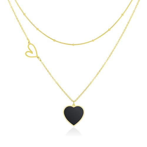 ブラックの石入りのハートペンダントネックレスレディース品で、18金アクセサリーチェーンになります。ステンレススチールのジュエリーで、ロング丈ネックレスのサビないゴールドアイテムで、シンプルで休日とかビジネス使いに最適なネックレスになります。