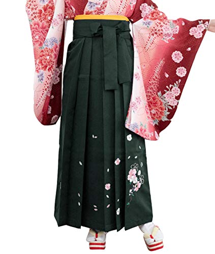 旅立つお祝いにぴったりな桜舞う袴はいかがですか。濃紫や臙脂等モダンな色から選べて、桜柄を引き立ててくれます。全身を写真撮影した時に良く映えると思います。