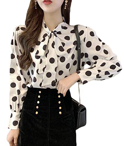 大きな水玉模様が、華やかなブラウスなので、かわいいです。リボンが、大きくてフェミニンで、素敵です。