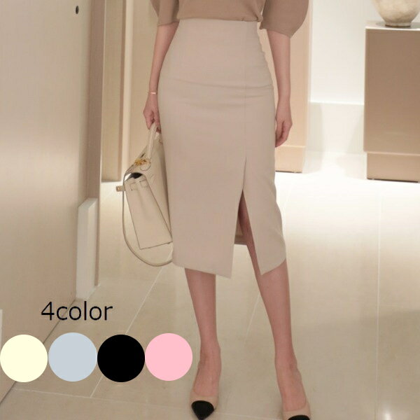 シンプルな無地のタイトスカートです。4色展開あります。無地だからビジネスにも使えて着まわしコーディネイトもしやすいアイテムです。きれいめな大人のファッションにスリット入りなのがポイントになりますね。