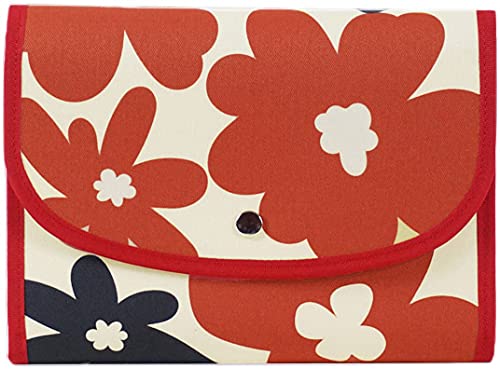 ジャバラタイプの母子手帳ケースです。ジャバラポケット3か所、カードポケット18か所、フリーポケット3か所など容量たっぷり。スカーレット色のお花のデザインも明るく可愛いですね。