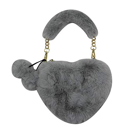 ハート型のキュートなデザインのファー付きのクラッチバッグで単色カラーでいろいろな服装に合わせやすいです。