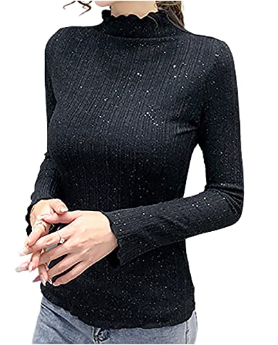 - [エムエルーセ] ハイネック タートルネック インナー ニット セーター ラメ 入り シンプル 長袖 春 秋 冬 丸首 ラウンドネック ゆる かわいい 可愛い カワイイ 着心地のいい 細身 フンワリ ふんわり 袖 ルームウェア 部屋着 とっぷす ながそでしゃつ おしゃれ キレイメ かじゅある お出かけ お呼ばれ 薄手 ヤワラカ ベルスリーブ フェミニン 上品 トップス ブラック MRD13-BKM