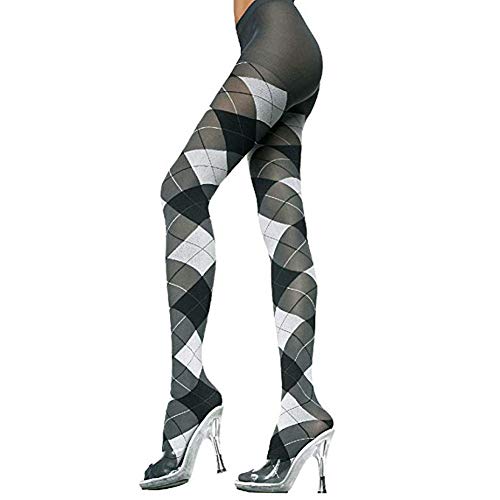 個人的にはサロペットのサイドスリットから素足が見えてしまうのに抵抗があり、タイツがストッキングがおすすめです。写真から黒色のサロペットと判断して、モノトーンのアーガイル柄なら大丈夫かなと思いました。大きく柄が取られていて、華やさかをもたらしてくれるところが良いですね。